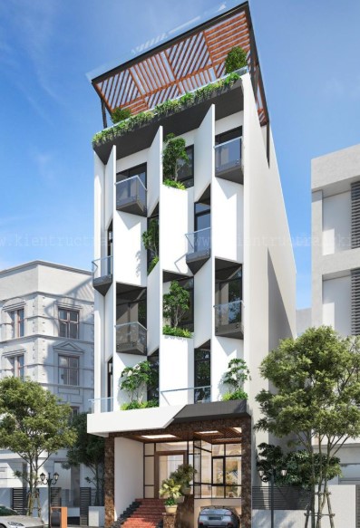 giả định công trình: 5 tầng + 1 tum, tổng sàn 550–600m2