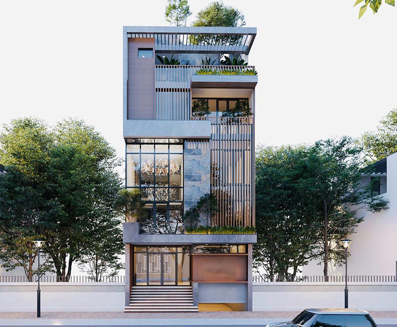 4. Thiết kế mặt tiền nhà ở kết hợp văn phòng: yếu tố quyết định ấn tượng đầu tiên