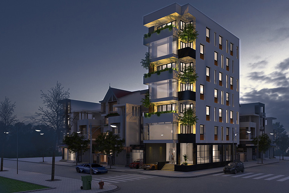 - Tầng trệt: sảnh tiếp khách, phòng họp, văn phòng làm việc